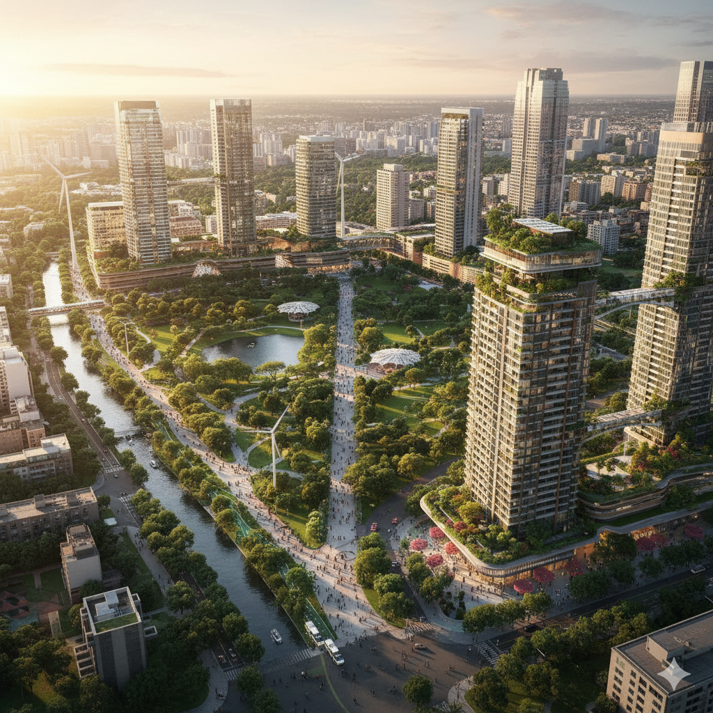 A Cidade Center Norte não se limita a ser um complexo de edifícios; ela propõe uma malha urbana completamente integrada, priorizando a sustentabilidade e a eficiência: