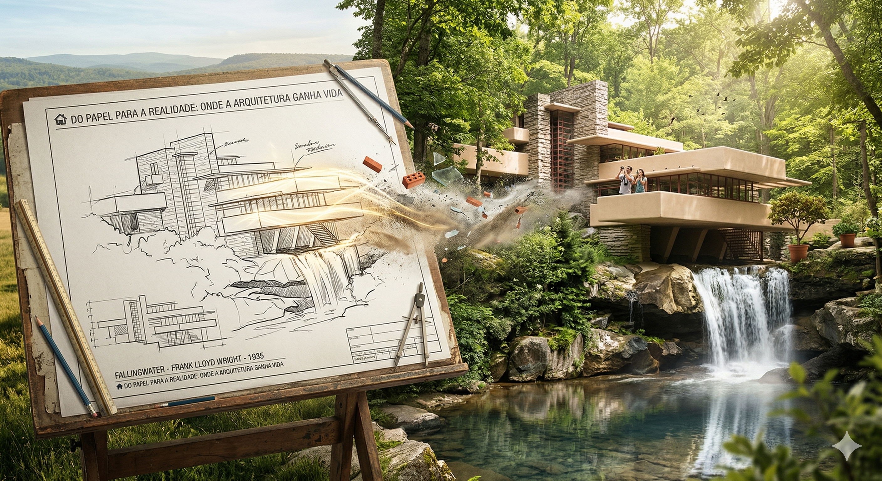 Projetada por Frank Lloyd Wright em 1935, esta Ă© talvez a residĂŞncia mais famosa do sĂ©culo XX. O ponto alto Ă© sua integração radical com a natureza: a casa foi construĂda diretamente sobre uma queda d’água. Hoje, Ă© um PatrimĂ´nio Mundial da UNESCO e recebe milhares de visitantes que buscam entender a harmonia perfeita entre o concreto e a floresta.